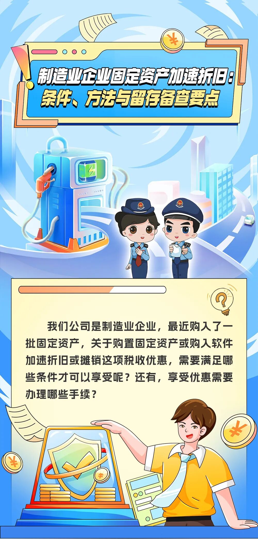 按照《国家税务总局关于发布修订后的く企业所得税优惠政策事项办理办法〉的公告》(国家税务总局公告2018年第23号)的规定办理有关手续。 此外,在国家税务总局公告2018年第23号规定的“固定资产加速折旧或一次性扣除”优惠事项主要留存备查资料的基础上,对留存备查资料的相关内容进行了调整